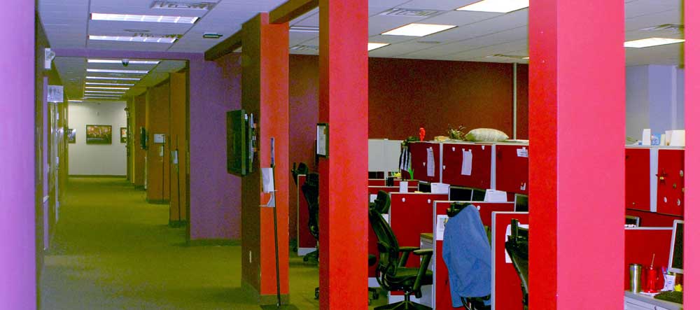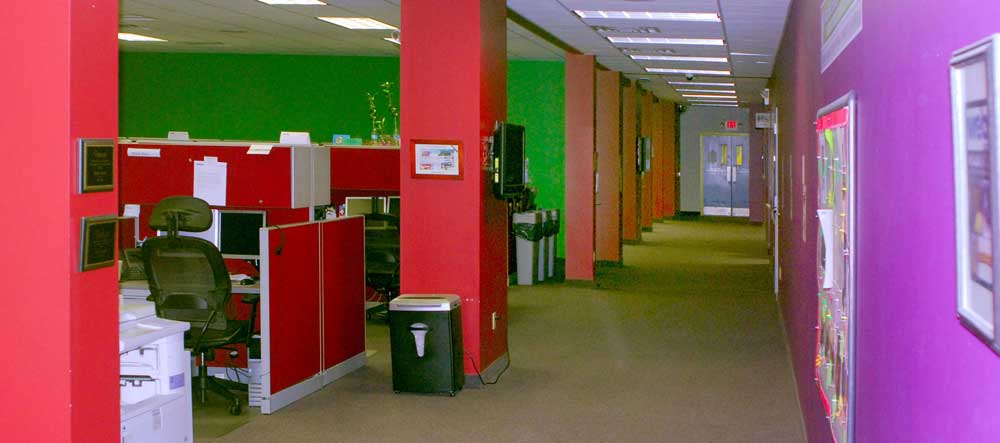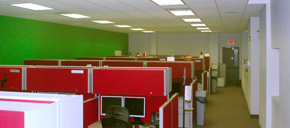 Original drop ceilings were removed and raised to 10 feet. New ceiling grid and tiles give the space a clean modern look.